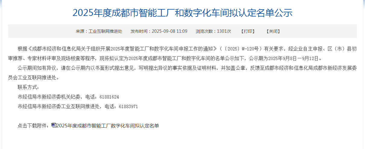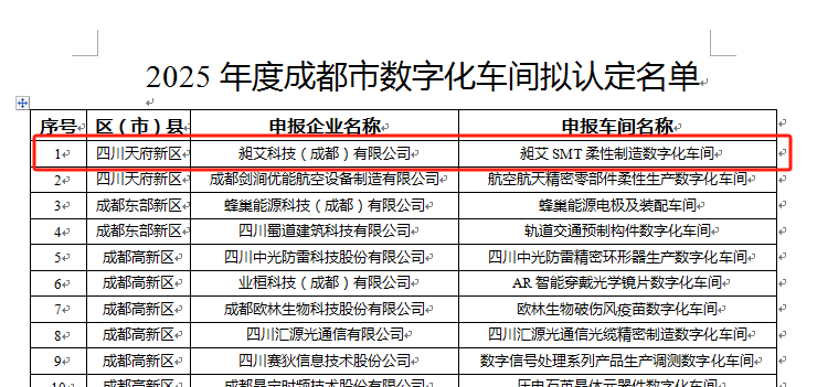 近日,昶艾 SMT 柔性制造数字化车间凭借在数字化制造领域的卓越实践与显著成果,成功荣获 “成都市数字化车间” 资质认定。